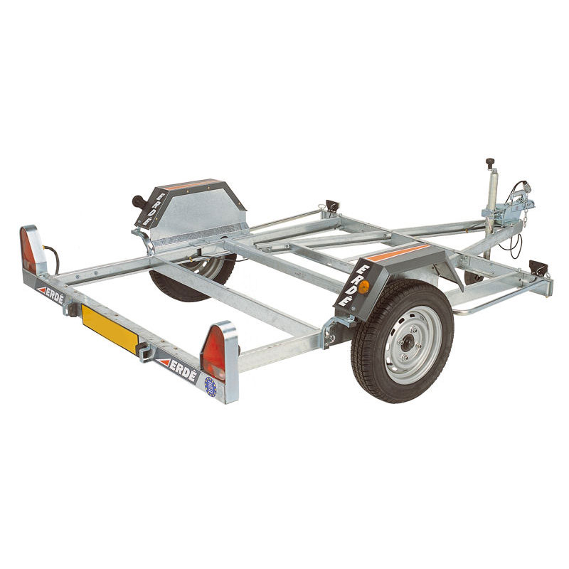 In its basic form the Erde CH751 trailer is a multi purpose chassis with a 624kg payload which can be tailored to me your exact needs. For motorcycles one two or three loading rails are required depending on how many motorcycle need to be transported. Alternatively, a ply board base can be fitted to create a flat bed trailer to allow a quad bike to be transported.